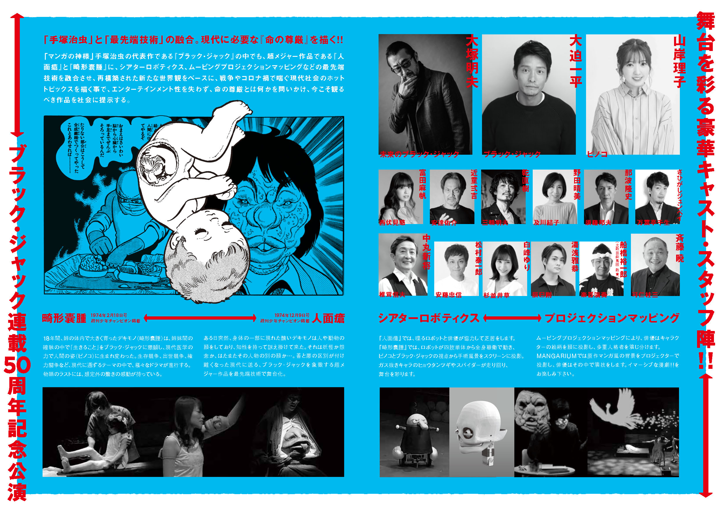 手塚治虫マンガを世界一舞台化している。その数は11公演、23作品にも及ぶ。
